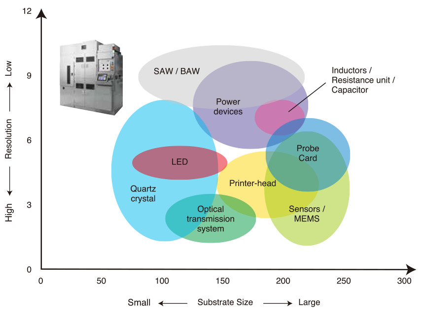 - - Most of layers can be exposed by this full-field projection mask aligner.